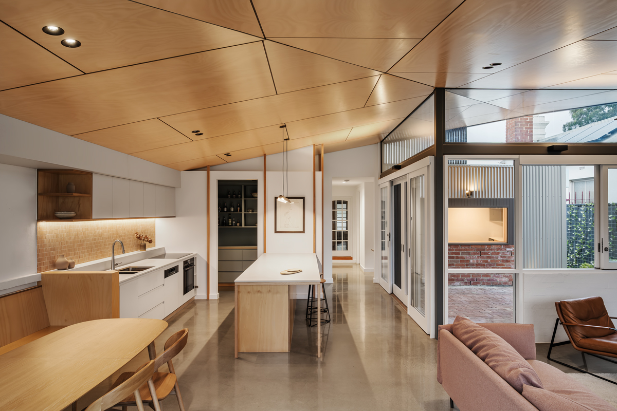 The extension to an existing 1900’s cottage in Goodwood responds to the client’s brief for a new bathroom, laundry, study, and a more functional open-plan living area.